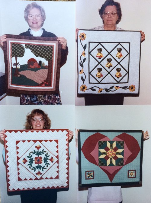 I won’t be able to show you all of the quilts, but I chose a few of the ones I found most interesting. The pictures you see here were taken of photographs, so the quality is not perfect. The American quilts have their makers in the pictures. The European ones don’t. I apologize for not having the quilter’s names with their quilts. That was one part of the documentation I neglected to include 😥 . I’ll share a slick trick about my  quilt at the end of the line up!