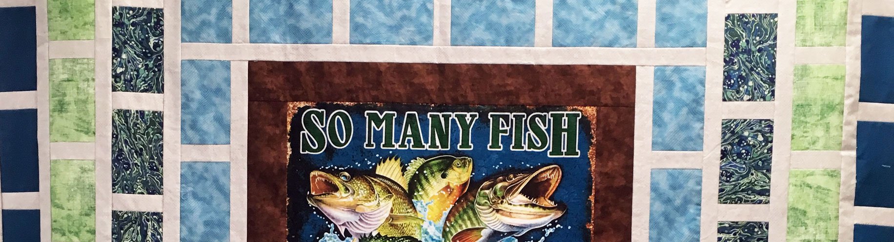 Around this same time my friend Debbie was looking for a pattern to make a quilt for her son. Tim is a fisherman for fun and a mason tender by trade. She found some wonderful fishing fabrics for his quilt and when she saw my Bricks and Mortar quilt – she knew she had the right pattern.