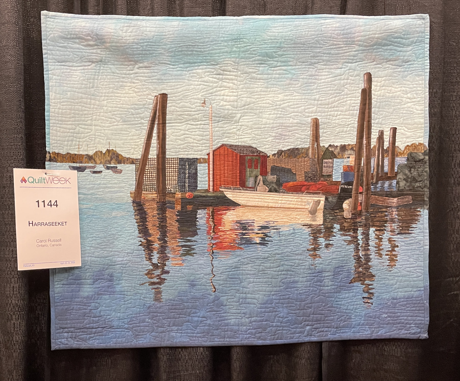 For some reason I’m drawn to nautical quilts, and there were quite a few amazing ones in this show. “Harraseeket” by Carol Russell captured this calming scene so well. Just look at the reflections in the water.