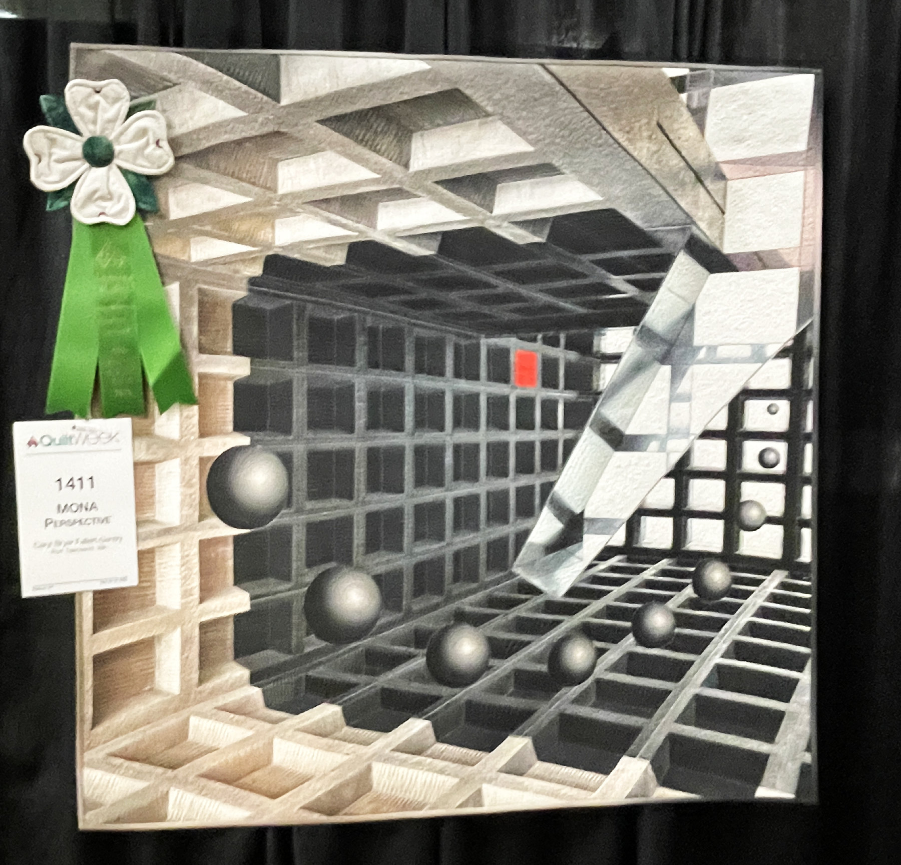 I was surprised to find that “MONA Perspective” was made by Caryl Bryer Fallert Gentry. She is one of my favorite quilters and teachers, but this isn’t her typical style. As with all her quilts, everything is done to perfection.