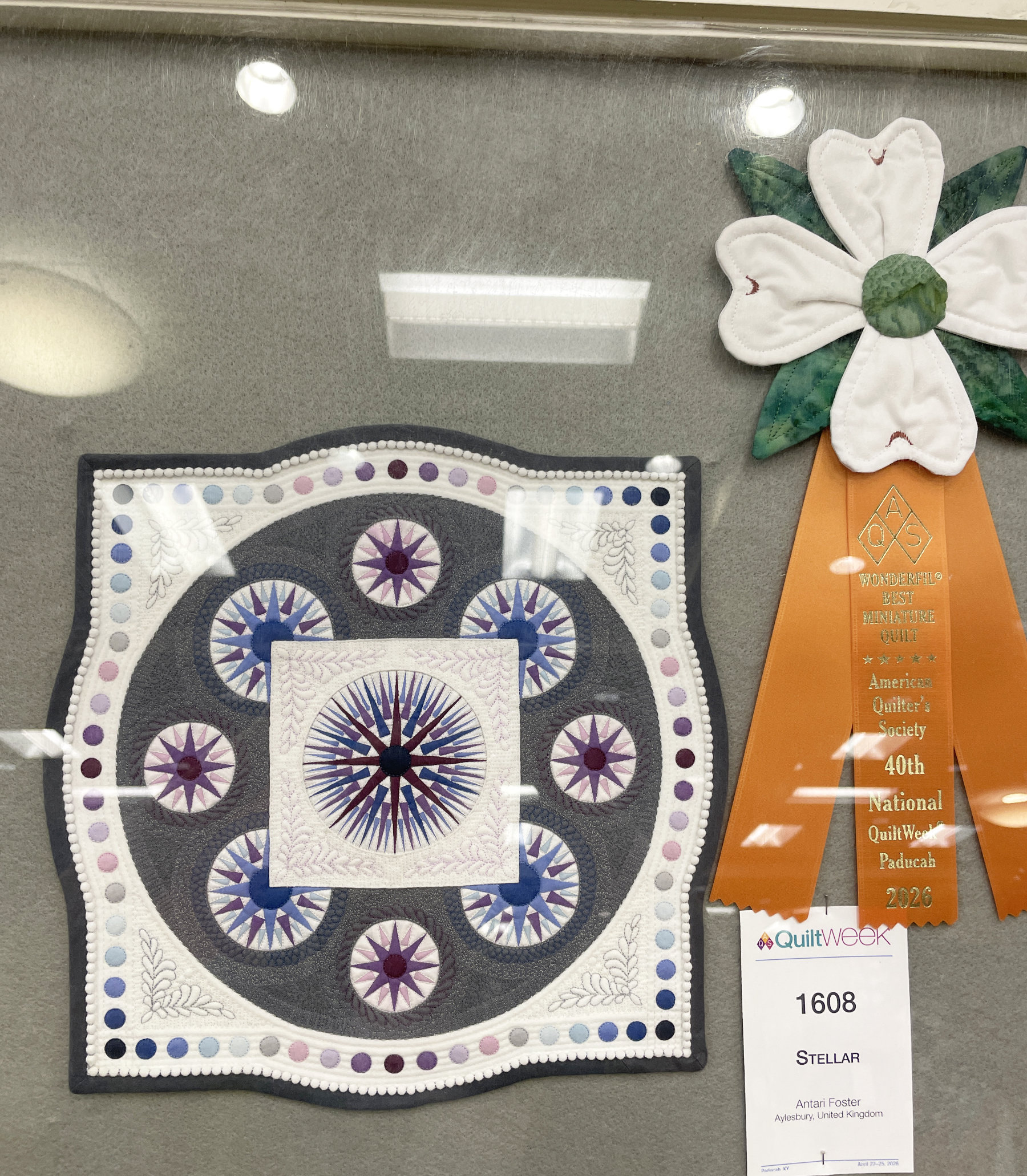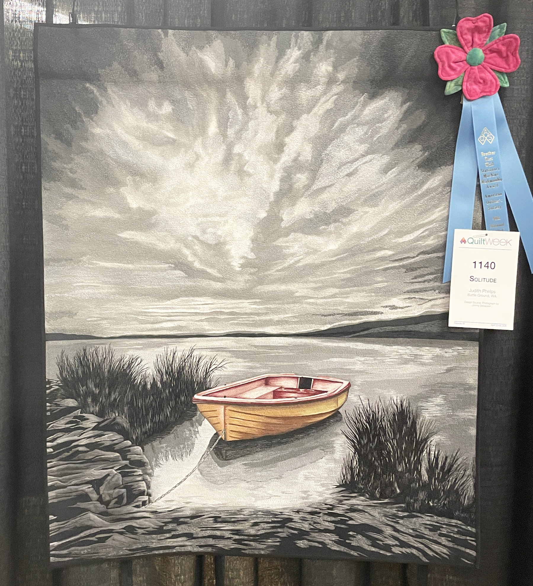 Solitude by Judith Phelps won the Brother Best Wall Stationary Machine Workmanship Award. It is also heavily thread painted,