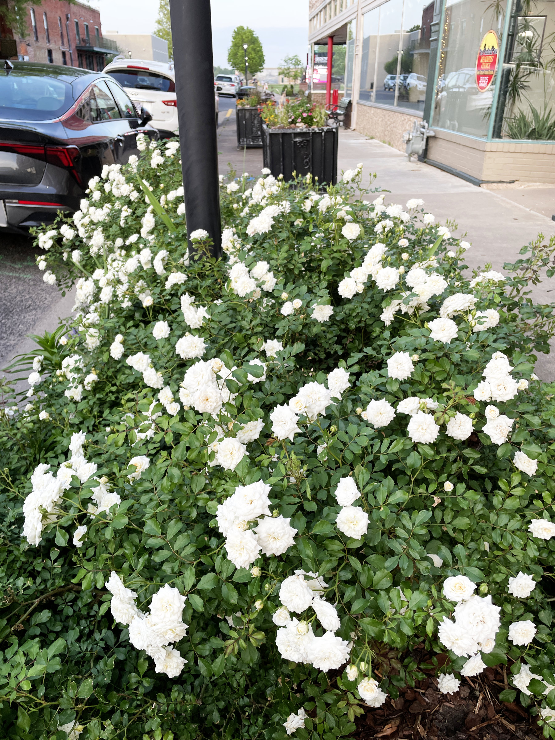 Last Sunday Lori and I headed down to the 40th annual AQS quilt show in Paducah, KY! It’s been such a warm Spring that the ornamental pear trees that line our driveway were blooming 3 weeks early (see photo above). That meant the dogwoods were not blooming in Paducah, but the roses were!