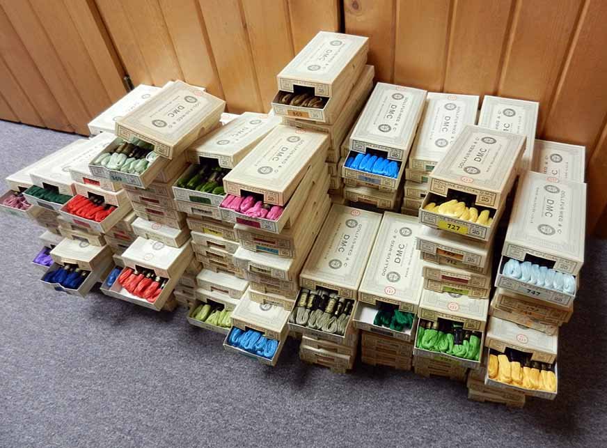 Some time has passed since I shared the story of my good fortune at having received a box filled with DMC embroidery floss (if you don’t remember that story, you can read about it by clicking here). I so enjoyed reading all the comments made to that post. Since then, I’ve had many people ask me if I’ve decided what to do with it all. There were many comments recommending I give it to charitable organizations, and I’m definitely planning on doing some donating.