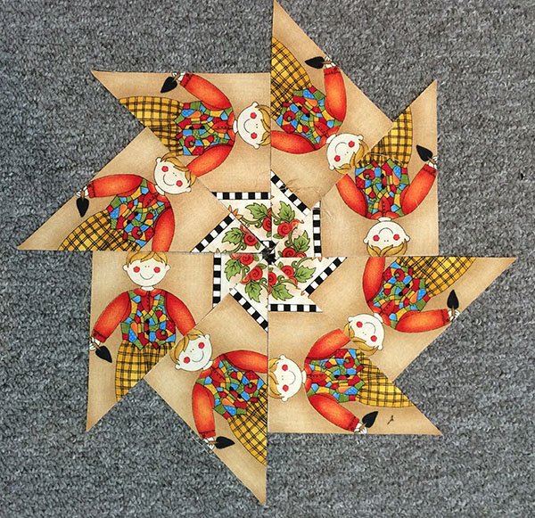 And I remember long ago when you cautioned me to be careful of human and animal figures in this type of quilt…you DON’T want to cut their heads off… U dun good!