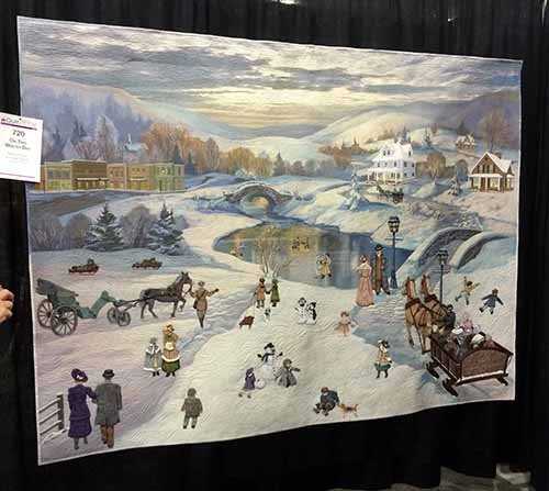 I’d like to leave you with a few more photos from the AQS show. One of my favorite quilts (and there were many) was made by Nancy Prince. I couldn’t take my eyes off it. The figures in the foreground were machine embroidered and then applied to the quilt. It was amazing.Nancy Prince quilt