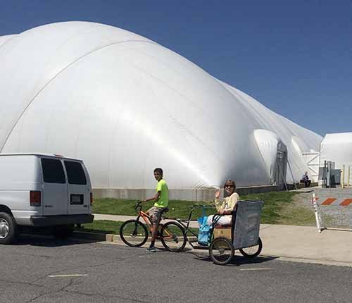A fun way to get around town was to ride in the bicycle rickshaws provided by Quilt in a Day.