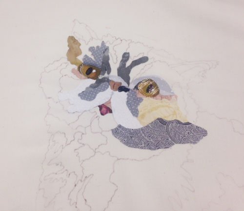 Laura decided to portray her cat in unexpected fabrics.