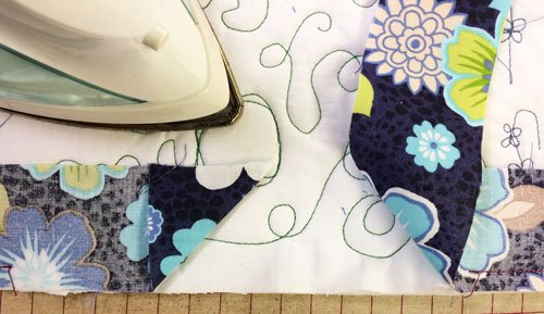 • Lay the “pressed/glued” strip on top of the second strip, glue side down, and carefully match the pattern. Iron in place to dry the glue.
