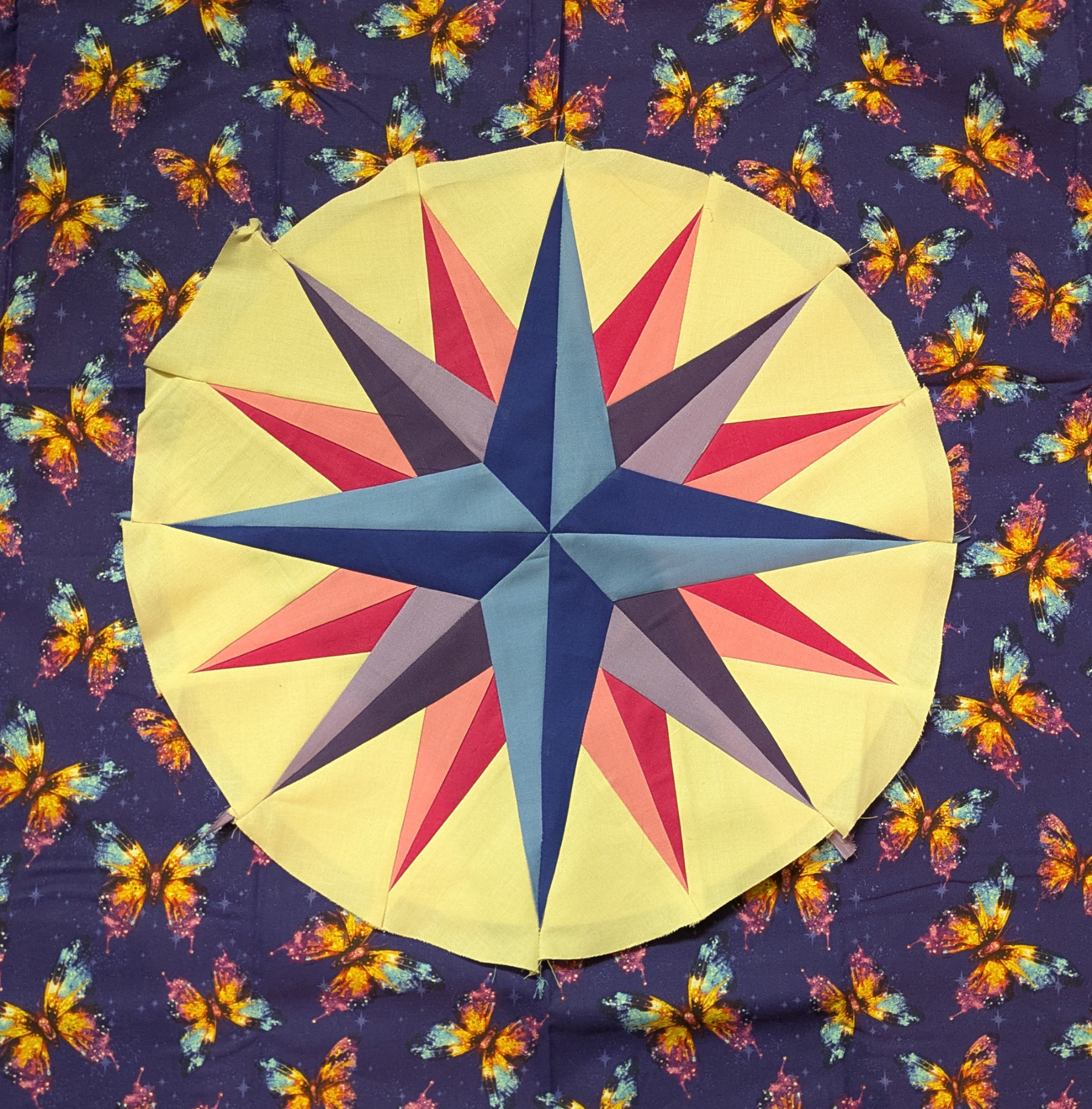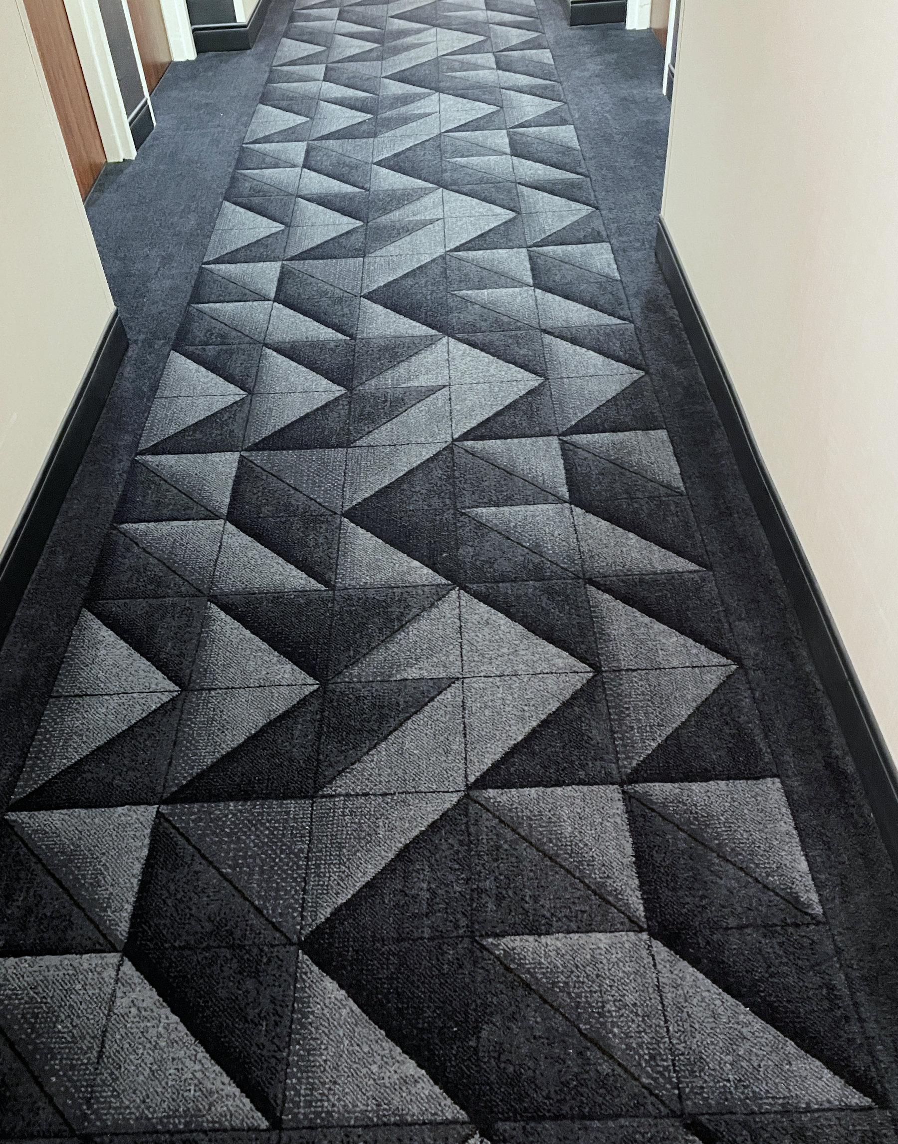 Last weekend I had the great privilege of teaching in Bloomington, Indiana. Every aspect of the show was delightful. It was held in the Bloomington Convention Center near the campus of the and Indiana University, and I stayed in the hotel connected to the Convention Center. This was such a blessing because they were experiencing a lot of rain last week (some students couldn’t even attend my classes because of flooding 😞). As I checked into the hotel I couldn’t resist taking a photo of the carpet outside my room – loads of blue half square triangles!