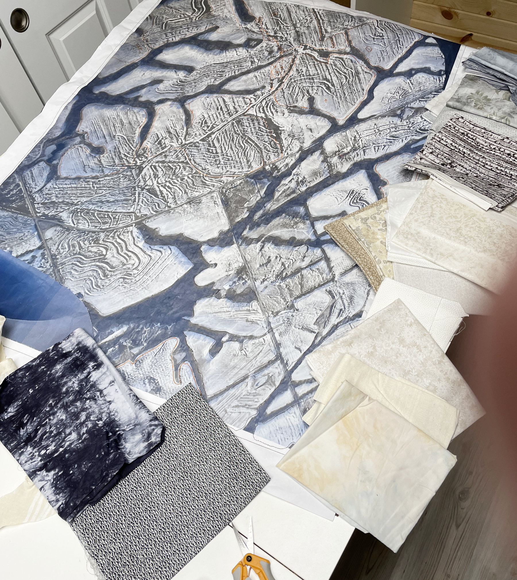 In January of 2020 I took a group of quilters to Japan. We spent a foggy winter night at the foot of Mt. Fugi. The next morning the fog broke for only about 20 minutes – but I was able to see the mountain from my balcony: