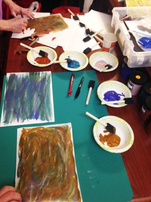 Linda provided all the supplies and showed us how to make leaves with this fun technique.