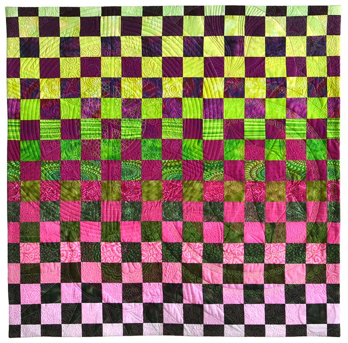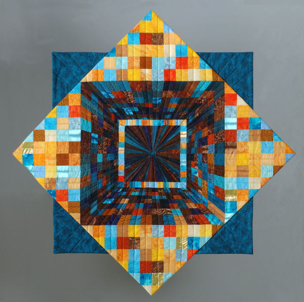 It’s not uncommon for a faced quilt to end up with bulky corners, but Kathleen’s way eliminates that problem with a slick trick for trimming out the excess. I’ve used her facing technique for many of my quilts and have always been pleased with the results. Here are a few of my faced quilts. All three of these quilts are clearly art quilts and I felt a binding would have detracted from the finished look of the quilt.