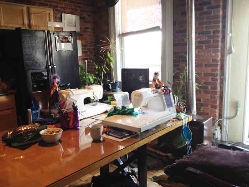 What a delightful continuation to our Sew We Go adventure, but it gets better! Saturday morning Kristi called everyone who had been at that table, to tell us that Kirsten was taking the bus from Chicago to Milwaukee. Kristi was going to pick her up and take her to Patched Works Quilt Shop and out for lunch. She invited us along. None of us was able to make it, but we were able to meet up with them a little later at Kristi’s home for a lovely time of conversation, snacks and eventually – pizza! (all except Lisa, who had to work 🙁 )