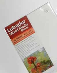 Sandy does her portraits on a product called Lutradur. It’s a stiff material that seemed to me to be a cross between paper and fabric, that comes in different weights. I did my practicing above on a medium weight sheet.
