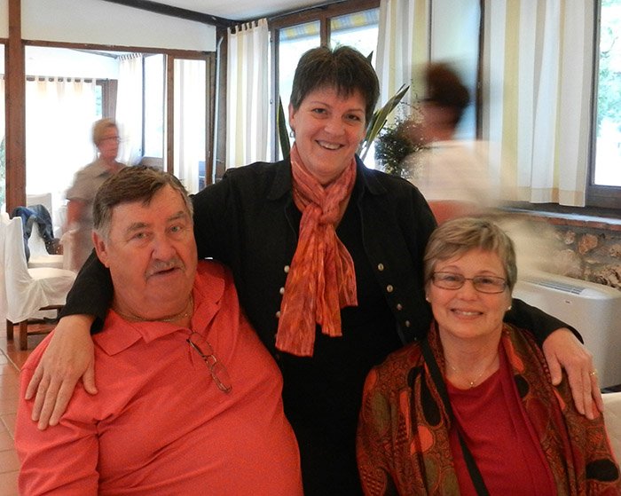 Sandy and her husband Jon have traveled to both Italy and the Baltic Sea with Wendy and me. Here’s a photo of them with Wendy having breakfast at our villa in Sienna.