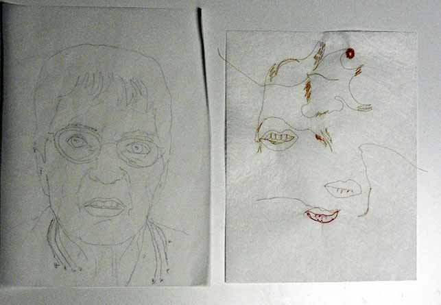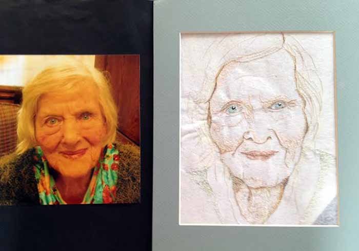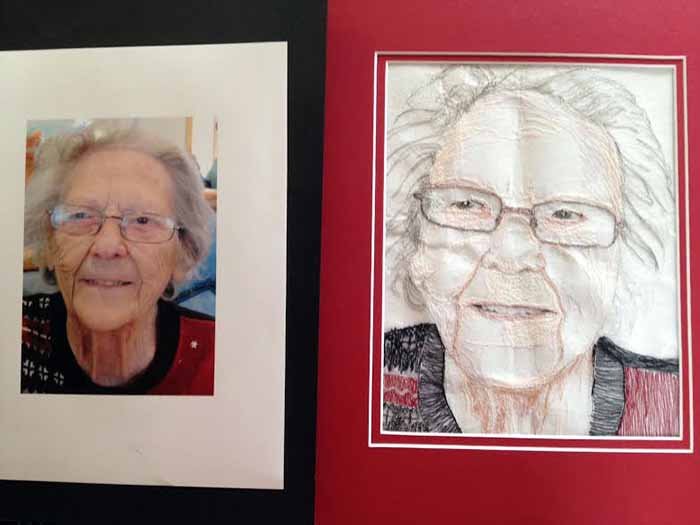 When my Mother-in-law passed away, I asked Sandy if I could hire her to do a thread portrait of Johanna and her response was “you should do it”. I remember that I chuckled and repeated my question. That time she said she would show me how. Well, life got busy and I didn’t bring it up again for over a year.