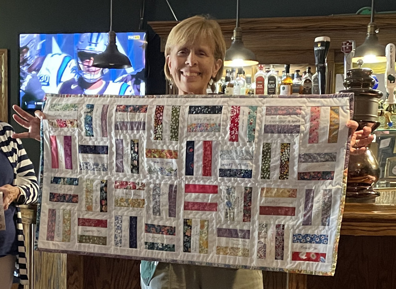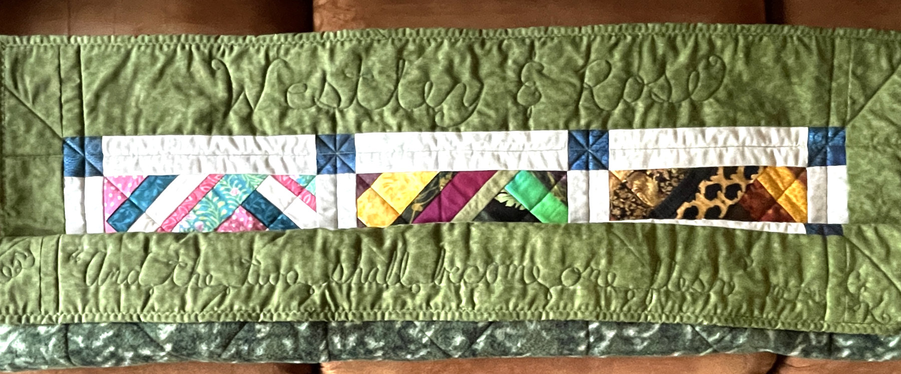 I have to share just one more photograph. I finished the Christmas quilt I started at our early December retreat! You may remember that I purchased the tree fabric at Liberty’s in London. The things in front of it have a story too: the painted sled was made by my great Uncle Everett, and painted by his wife, Aunt Hazel. The teddy bear was made from Mike’s mom’s fur coat. When I found the toy rocking horse at a thrift store I knew I had to put them all together.